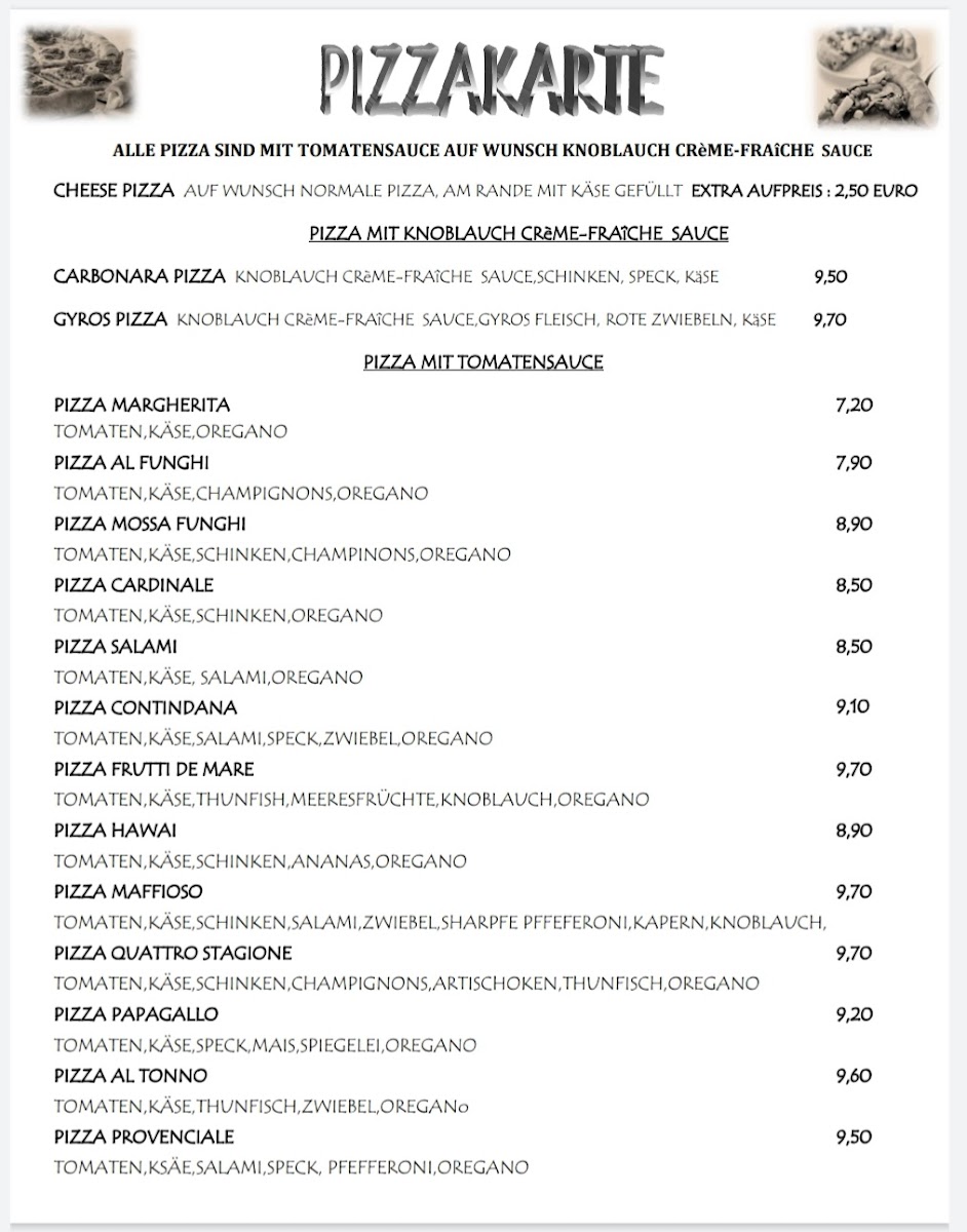 The menu highlights include an impressive selection of delicious pizzas, noted for their crispy crust and generous toppings. Customers rave about the flavor, with many claiming the pizzas are not just large but also deliver exceptional taste at reasonable prices. Pair your meal with classic Austrian dishes, like the well-reviewed Wiener schnitzel, which promises a comforting dining experience.